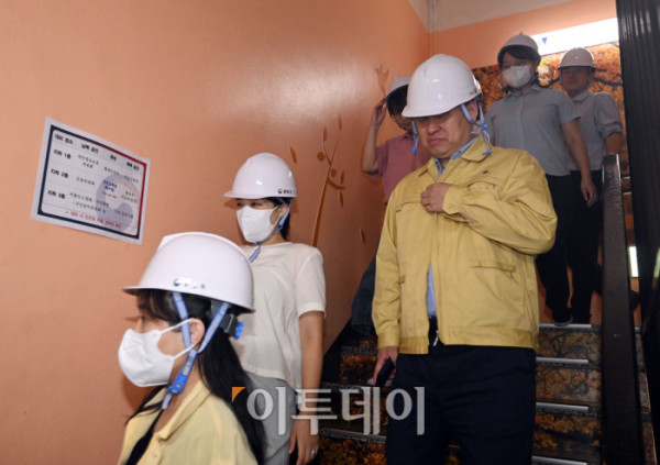 ▲20일 서울 종로구 정부서울청사에서 열린 2025년 8월 을지연습 연계 정부서울청사 공습대비 민방위 훈련에서 공무원들이 지하2층 대피장소로 이동하고 있다. 조현호 기자 hyunho@