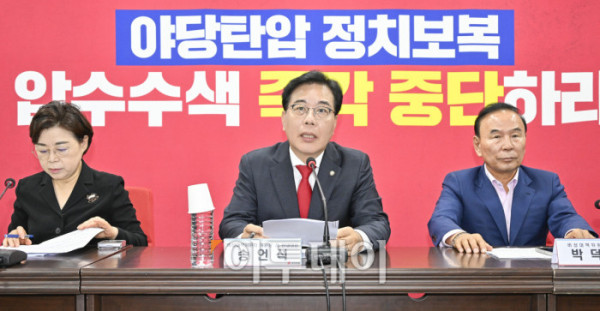 특검의 당사 압수수색 시도와 당원명부 요구에 대해선 “야당을 잠재적 범죄자로 보는 반인권적 시도”라며 “야당을 때려잡는다고 경제가 살아나느냐, 전 정권 트집 잡아 전직 대통령 망신 준다고 민생이 나아지느냐”고 따졌다. 그는 “정부·여당의 무능과 오만을 견제하려면 야당이 바로 서야 한다. 당원명부 압수시도는 지금도 계속되고 있다”고 했다.