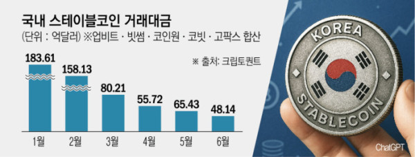 그동안 법안 지연과 규제 이슈로 신중한 태도를 보이던 국내 은행들이 적극적으로 나선 것은 폭발적으로 커진 스테이블코인 거래가 주효했다는 분석이다. 크립토퀀트 집계에 따르면 올해 상반기 국내 5대 원화 거래소(업비트·빗썸·코인원·코빗·고팍스)에서 거래된 스테이블코인 규모는 591억2530만 달러(약 80조8192억 원)로 전년 동기 대비 188.3% 폭증했다. 국내 상황이 여의치 않지만 시장만 달아오르자 은행들이 뒤늦게 대응에 나선 셈이다.
