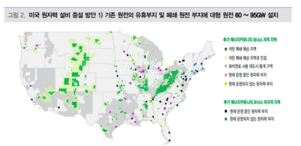 대신증권은 한국수력원자원과 웨스팅하우스(WEC)의 합작사를 통한 북미 원전시장 진출이 단순히 WEC의 AP1000 건설에 그치지 않고, 한국형 원전(APR1400) 건설까지 확대될 수 있다고 전망했다. 이에 따라 원전 업종 투자의견을 ‘비중확대(상향)’로 제시하며 톱픽으로 한전기술(목표주가 15만 원), 한국전력(4만9000원), 두산에너빌리티(8만5000원)를 꼽았다.