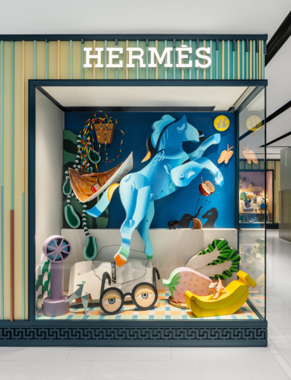 새 매장에는 한국 전통 예술과 K팝의 역동성을 반영한 디자인을 적용했다. 외관은 단청 문양에서 영감을 받아 현대적으로 재해석했고, 내부는 K팝 문화에서 착안한 파스텔과 네온 색상의 대비를 통해 활기를 강조했다. 윈도 디스플레이는 현대미술작가인 이미주와 협업해 올해의 에르메스 테마 ‘드로잉, 창작의 시작’을 바탕으로 제작했다.