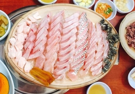 인천 중구 신포시장 맛집으로 불리는 '화○○○'에서는 민어회와 민어탕이 대표 메뉴다.