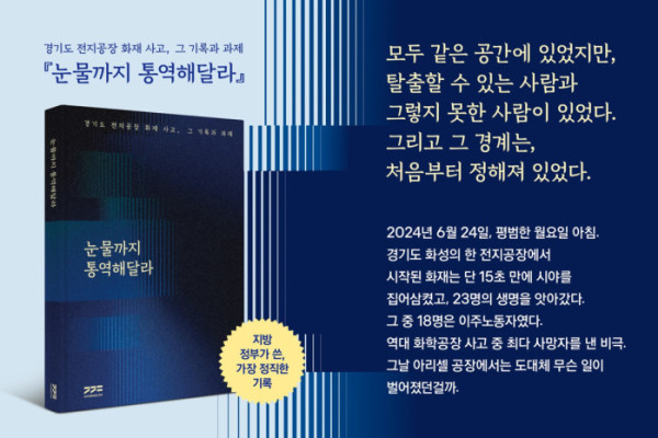▲경기도가 전지공장 화재사고 보고서 ‘눈물까지 통역해달라’를 책으로 발간해 시중 서점과 온라인몰에서 판매한다. (경기도)