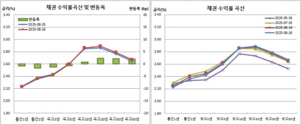또다른 채권시장 참여자는 “트럼프의 리사 쿡 해임 통보로 아시아장에서 미 장기금리가 오르면서, 원화채권도 커브가 섰다. 국고채 20년은 발행수량이 적어 선매출 종목은 강하게 낙찰된 후 스퀴즈성 매수가 들어오며 금리가 급락했다. 반면 본매출은 스플릿이 발생하는 등 혼란스러운 모습을 보였다”며 “금통위를 앞두고 짧은쪽 수요가 들어오며 단기구간은 지지된 반면 장기물은 20년 입찰을 소화한 후 변동성이 커지며 불안한 흐름을 이어갔다”고 말했다.