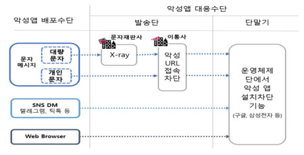 또한 정부는 보이스피싱 주요 수단에 대한 원천 차단에도 나선다. 문자사업자, 이동통신사, 단말기로 이어지는 '3중 차단망'을 구축해 악성앱 설치를 원천 봉쇄하고 외국인 명의 휴대전화 개통은 1회선으로 제한하며 개통 시 안면인식 절차를 추가한다. 해외 발신번호를 국내 번호로 위장하는 사설 중계기 '심박스(SIM Box)' 역시 전면 금지된다.