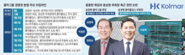 콜마그룹 오너가 경영권 분쟁이 임시주주총회를 둘러싼 신경전, 소송전으로 격화하는 가운데 양측이 내세우려는 이사회 인물에 대한 인사 검증 논란으로까지 번지고 있다.