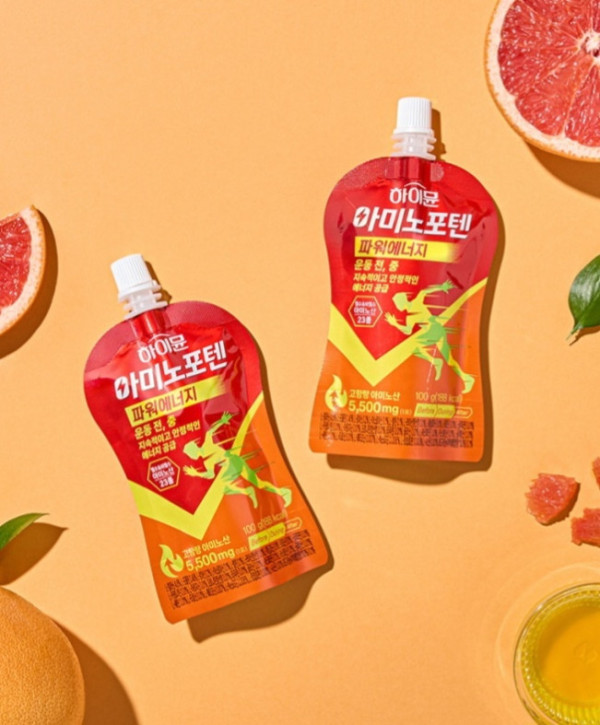 ‘하이뮨 아미노포텐 파워에너지’는 빠른 근육 회복이 이루어질 수 있도록 필수 아미노산 9종과 비필수 아미노산 14종을 함유한 제품으로 1회 섭취 시 5500mg의 아미노산을 섭취할 수 있다.