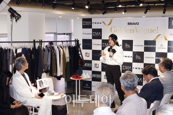 ▲박명선 패션디렉터가 28일 서울 강남구 논현동 이투데이빌딩 라운지에서 열린 브라보마이라이프 창간 10주년 기념 프리미엄 패션 축제 'Bravo Golden Vogue'에서 '시니어들을 위한 스타일링 팁' 특강을 하고 있다. 고이란 기자 photoeran@