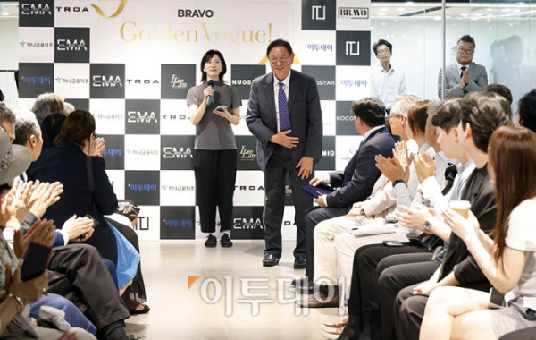 ▲28일 서울 강남구 논현동 이투데이빌딩 라운지에서 열린 브라보마이라이프 창간 10주년 기념 프리미엄 패션 축제 'Bravo Golden Vogue'에서 이종재 이투데이 그룹 부회장이 인사하고 있다. 고이란 기자 photoeran@