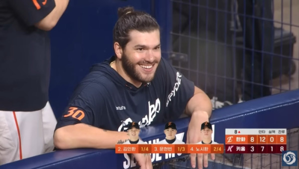 이날 고척돔에는 코디 폰세(한화), 송성문(키움)을 지켜보기 위해 무려 11개 구단의 메이저리그 스카우트들이 모여 있었는데 오히려 현장의 시선을 사로잡은 건 정우주였다. 그의 150km대 강속구 9개가 모두 스트라이크로 꽂히자 MLB 스카우트들조차 환호하며 박수를 보냈다. 폰세 또한 넋을 놓을 정도였다.