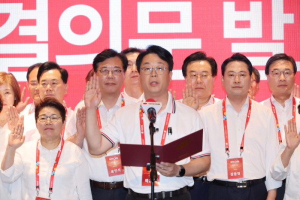 곽규택 수석대변인은 결의문을 낭독했다. 결의문은 △국민의 삶을 최우선에 두는 민생정당으로 거듭 △이재명 정부·민주당의 입법 폭주를 막고 대안을 제시 △뼈를 깎는 혁신과 쇄신을 통해 당을 재정비한다는 3대 항목을 담았다.