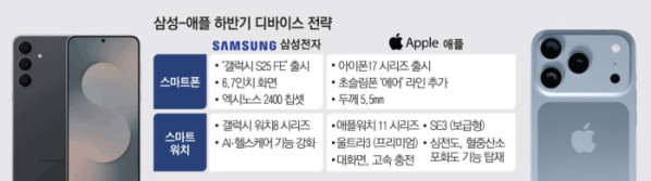삼성전자와 애플이 스마트폰과 스마트워치 신제품을 잇달아 공개하며 하반기 글로벌 디바이스 시장 주도권을 두고 정면 승부에 나선다. 삼성전자는 보급형 제품으로 선공을, 애플은 초슬림 제품과 워치 신제품으로 반격을 예고하며 시장 긴장감이 고조되고 있다.
