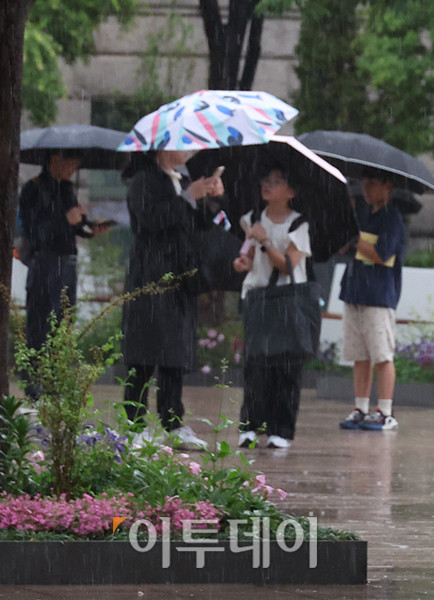 ▲서울 중구 서울광장 인근에 우산을 쓴 시민들이 발걸음을 재촉하고 있다. 고이란 기자 photoeran@