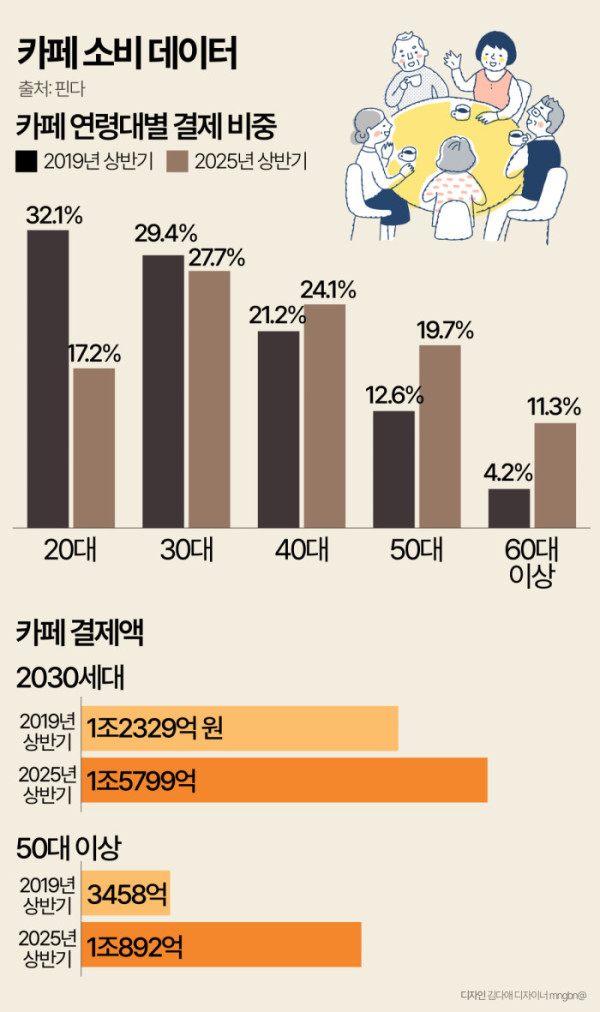 카페 소비 중심이 2030세대에서 5060세대로 넘어가고 있다.
