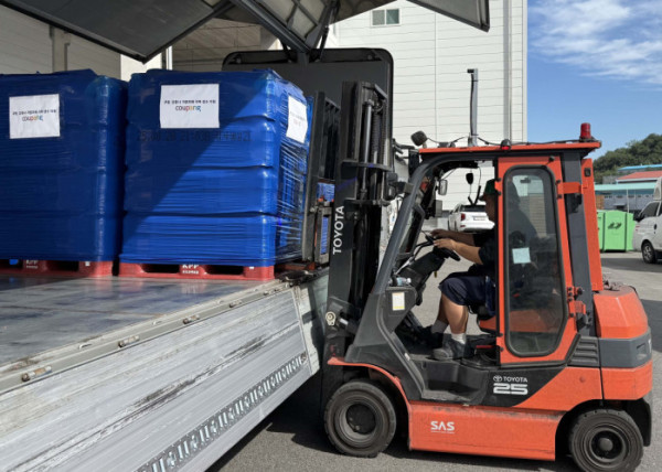▲쿠팡이 강릉 가뭄 피해 돕기 위해 생수 2리터 20만 병을 지원했다고 2일 밝혔다. (사진제공=쿠팡)