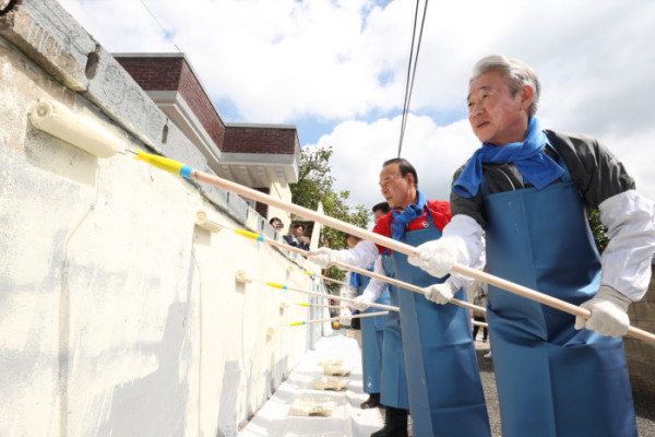 농협중앙회는 2일 충북 영동군 추풍령면 학동리에서 ‘사랑의 집고치기 농가희망 봉사활동’ 발대식을 열고 지역 내 농가 12가구를 대상으로 도배·담장 도색 등 주거환경 개선 작업을 진행했다.
