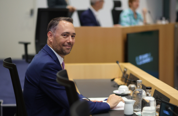 ▲막심 프레보 벨기에 외무장관이 14일(현지시간) 벨기에 브뤼셀에서 회의에 참석하고 있다. 브뤼셀/EPA연합뉴스