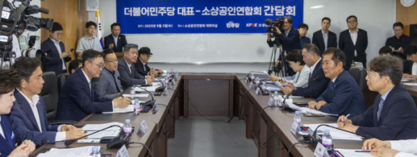 정청래 더불어민주당 대표가 3일 서울 여의도 소상공인연합회를 찾아 송치영 회장을 비롯한 관계자들과 정책간담회를 가졌다.