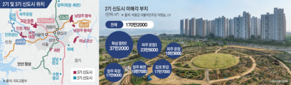 정부의 부동산 공급대책에 3기 신도시 조성 속도를 높이는 안이 포함될 것으로 예상된다. 다만 2기 신도시도 교통망 확충이 더디고 비아파트용을 중심으로 미매각 용지가 상당해 3기 신도시가 빠르게 추진될 수 있을지 우려도 적지 않다. 업계에선 3기 신도시를 빠르게 조성하더라도 관건인 교통 인프라는 빠르게 구축되기 어려울 것이란 관측이다.