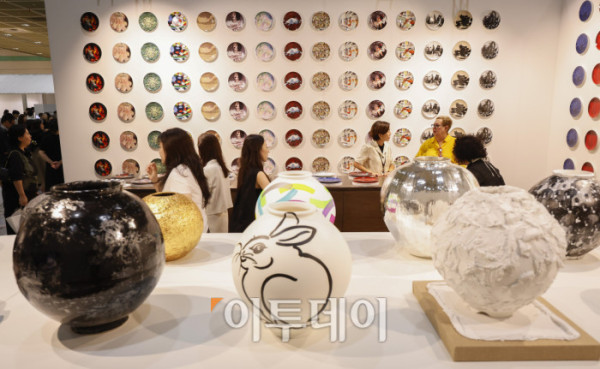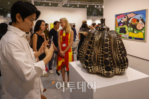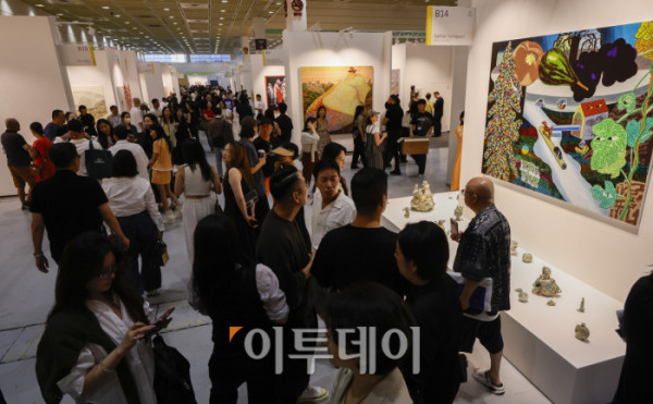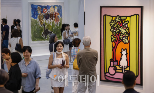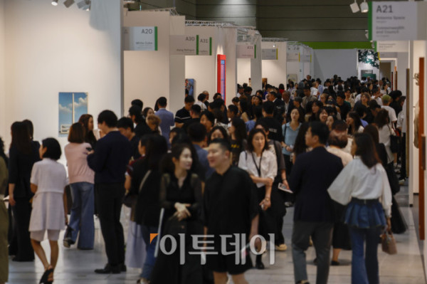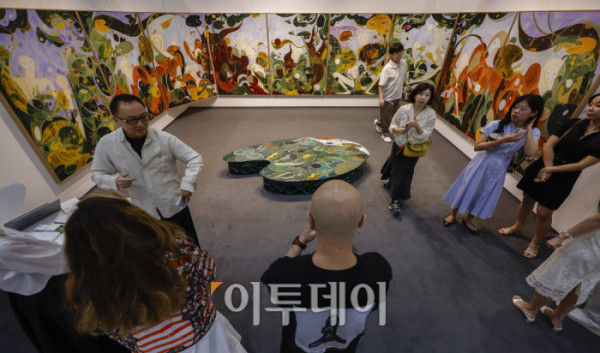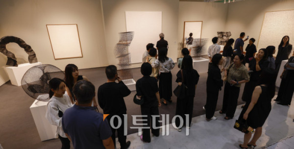 ▲3일 서울 강남구 코엑스에서 열린 프리즈 서울 2025(Frieze Seoul 2025) VIP 프리뷰 데이에서 관람객들이 전시된 작품을 살펴보고 있다. 조현호 기자 hyunho@
