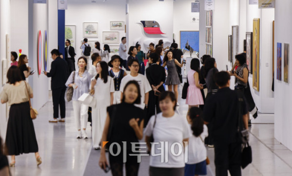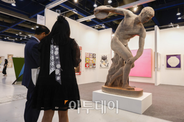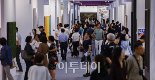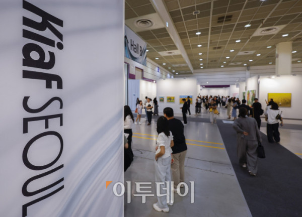 ▲3일 서울 강남구 코엑스에서 열린 키아프 서울 2025(Kiaf SEOUL 2025) VIP 프리뷰 데이에서 관람객들이 전시된 작품을 살펴보고 있다. 조현호 기자 hyunho@