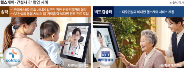 헬스케어 전문기업 비트컴퓨터는 대우건설과 협력해 아파트 단지 내 비대면 헬스케어 서비스를 선보일 예정이다. 입주민은 모바일 앱 ‘바로닥터’를 통해 세대 내에서 자가검진, 예약, 원격진료까지 편리하게 이용할 수 있다. 회사는 최근 재건축 단지인 개포우성7차에도 관련 서비스를 제안했으며 향후 조합원 상황에 맞춰 서비스를 확대 적용할 계획이다.