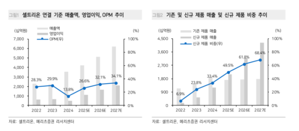 다만 초기 미국 DS 공장 인수 및 설비 투자로 인해 영업이익률(OPM) 성장성에 단기 훼손 리스크가 존재한다. 그럼에도 램시마SC, 유플라이마, 스테키마 등 고마진 신제품 출시와 레버리지 효과가 실적 성장을 견인할 것으로 내다봤다. 김 연구원은 “바이오시밀러 임상 3상 면제로 개발 비용이 줄어드는 환경에서 셀트리온은 품질·공급 능력과 시장 침투 전략을 바탕으로 긍정적 요인을 극대화할 수 있는 기업”이라며 “중장기적 성장성에 주목할 필요가 있다”고 강조했다.