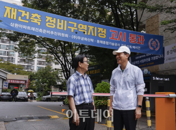 오세훈 서울시장이 4일 재건축사업 현장점검을 위해 서울 도봉구 삼환도봉아파트를 찾아 관계자와 대화를 하고 있다. 조현호 기자 hyunho@