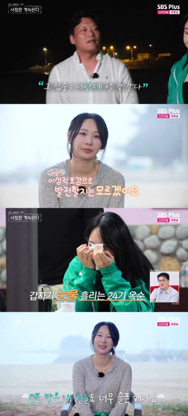0표의 굴욕을 맛본 24기 옥순이 결국 눈물을 쏟았다.