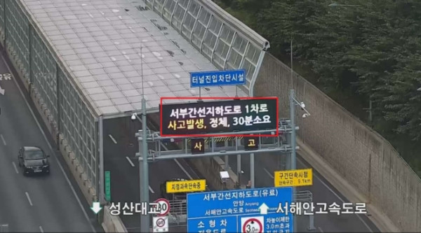 5일 오전 서울 금천구 서부간선지하도로 고척교에서 광명대교로 향하는 일직방향 1차로에서 추돌사고가 발생했다. 서울시 교통정보에 따르면 해당 구간은 정체가 발생해 30분이 소요된다고 안내했다.