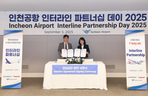 인터라인은 서로 다른 항공사의 노선을 하나의 항공권으로 묶어 판매하는 방식이다. 승객은 환승 과정에서 별도의 체크인이나 수하물 수취 절차 없이 이동할 수 있어 편의성이 높아지고, 항공사는 노선망 확장과 환승객 유치 효과를 기대할 수 있다. 이번 협약으로 티웨이항공은 아시아·대양주·유럽 노선, 에어프레미아는 미주 노선을 연결해 이용객들에게 더 폭넓은 여정을 제공할 수 있게 됐다. 양사의 인터라인 서비스는 9월 중 시행될 예정이다.
