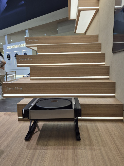 중국 가전기업 드리미는 5일(현지시간) 독일 베를린에서 열린 IFA 2025에서 세계 최초로 계단을 오를 수 있는 로봇청소기 ‘사이버 X’를 선보였다.