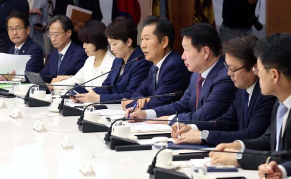 ▲정청래 더불어민주당 대표와 최태원 대한상공회의소 회장 등이 8일 서울 중구 대한상공회의소에서 열린 ‘더불어민주당-대한상공회의소 정책간담회’에 참석하고 있다. 신태현 기자 holjjak@