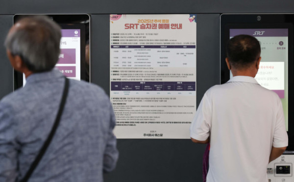 ▲노인과 장애인을 포함한 교통약자를 대상으로 수서고속철도(SRT)의 추석 승차권 우선 예매 가 시작된 8일 서울 강남구 수서역에 관련 안내문이 게시돼 있다. 이날부터 9일까지 노인과 장애인, 국가유공자는 내달 2일부터 12일까지 운행하는 열차 승차권을 SRT 홈페이지나 전화를 통해 예매할 수 있다. 전국민을 대상으로 하는 SRT 추석 승차권 예매는 10일 부터 시작된다. 신태현 기자 holjjak@