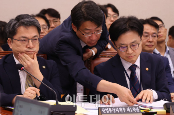 ▲김정관 산업통상자원부 장관이 8일 서울 여의도 국회 산업통상자원중소벤처기업위원회 전체회의에서 자료를 살펴보고 있다. 고이란 기자 photoeran@