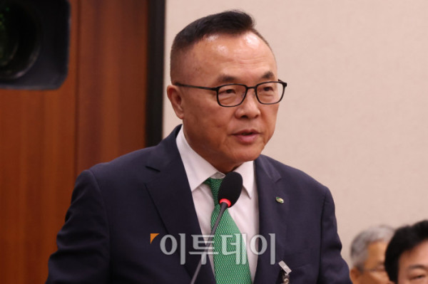 ▲황주호 한국수력원자력 사장이 8일 서울 여의도 국회 산업통상자원중소벤처기업위원회 전체회의에서 의원 질의에 답하고 있다. 황 사장은 지난달에 3년 공식 임기가 만료됐지만 후임 공모 절차가 진행되지 않아 사장직을 이어가고 있다. 고이란 기자 photoeran@