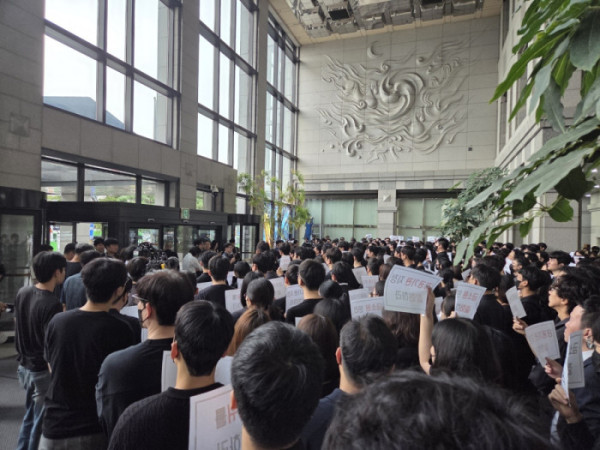 금감원 노동조합은 9일 오전 8시 서울 여의도 본원 1층 로비에서 출근길 시위를 열었다. 현장에는 검은 옷을 맞춰 입은 직원 수백 명이 모여 “금소원 분리 반대”, “공공기관 지정 철회” 등의 구호를 외쳤다.