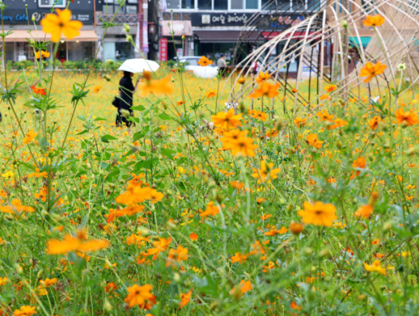 ▲처서(處暑)가 지났지만 전국에 무더운 날씨가 이어지고 소나기가 내린 31일 경기 수원시 화성행궁 인근에 피어난 황화코스모스가 가을이 성큼 다가왔음을 알리고 있다. (신태현 기자 holjjak@)