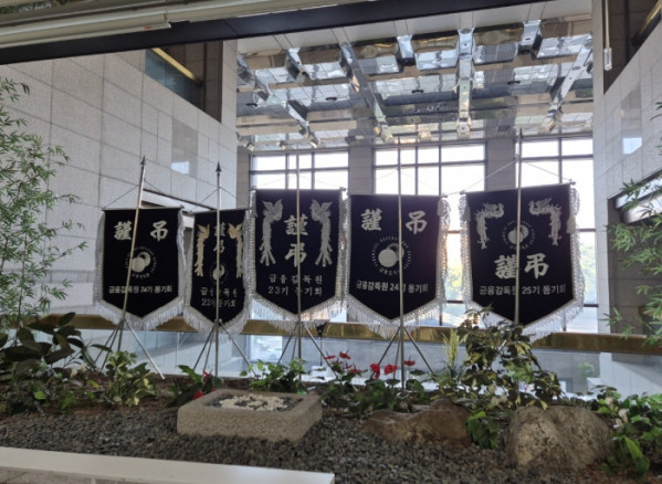 ▲금융감독원 본원 2층에 설치된 근조기. (여다정 기자 yeopo@)