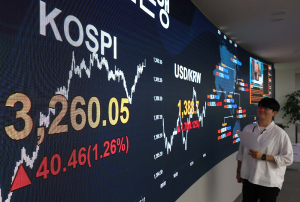 ▲코스피가 세제 개편안 불확실성 해소 기대감에 힘입어 연고점을 경신했다. 9일 서울 여의도 KB국민은행 스마트딜링룸 모니터에 코스피 종가가 표시되고 있다. 이날 코스피는 전장 대비 40.46포인트(1.26%) 오른 3260.05에 마감했다. 코스피가 3250선을 넘어선 것은 지난 7월30일(3254.47) 이후 한 달여 만으로, 장 마감 기준 연중 최고치다. 신태현 기자 holjjak@