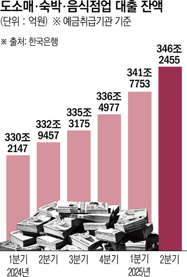 10일 한국은행 경제통계시스템에 따르면 올해 상반기 기준 자영업자가 몰려 있는 도소매·숙박·음식점 업종의 대출금 잔액은 346조2455억 원으로 집계됐다. 지난해 같은 기간(332조9457억 원)보다 13조 원 이상 증가한 수치다. 지난해 말 336조4977억 원에서 불과 반년 만에 10조 원 가까이 불어나면서 역대 최대치를 갈아치웠다. 자영업자들이 빚으로 버티는 전형적인 ‘불황형 대출’ 양상이 뚜렷하다.