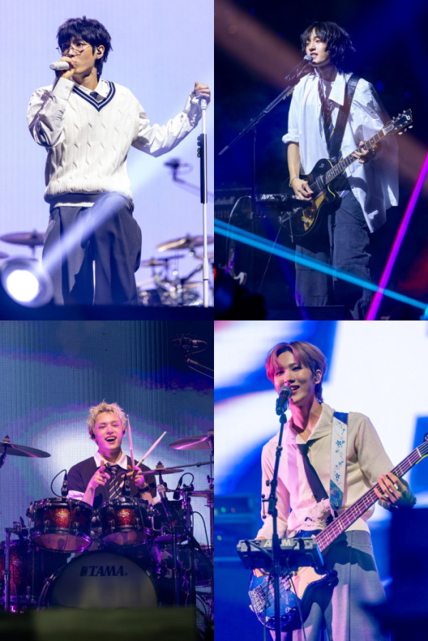 트리플 타이틀곡 중 하나인 ‘너는 나를 시인으로 만들어 (Love Poem)’로 서정적인 분위기 속 떼창을 이끈 AxMxP는 ‘화이트 티셔츠(White T-shirt)’, ‘우기가 찾아와 (Season of Tears)’까지 가을의 초입에 꼭 어울리는 감성적인 무대를 펼쳤다. 드라마틱한 전개의 힙합 록 장르 곡 ‘버저 비터(Buzzer Beater)’로 분위기를 반전시킨 이들은 거칠고 에너지 넘치는 사운드의 ‘헤드뱅(Headbang)’, 그리고 또 다른 타이틀곡인 강렬한 힙합 기반의 록 트랙 ‘아이 디드 잇(I Did It)’까지 그야말로 무대를 장악하는 패기와 열정을 보여주며 객석의 호응을 이끌었다.