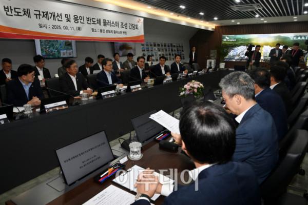 ▲김민석 국무총리가 11일 경기 용인시 처인구 용인 반도체 클러스터에서 열린 반도체 규제개선 및 용인 반도체 클러스 조성 간담회에서 모두발언을 하고 있다. 청사사진기자단