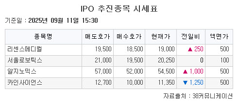 기업공개(IPO) 관련 상장 예비심사 청구 종목으로 리보핵산(RNA) 기반 유전자치료제 개발기업 알지노믹스는 5만4500원(1.87%)으로 상승 반전했다.