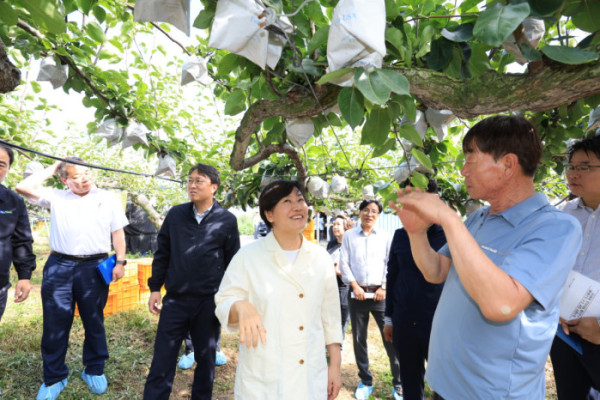 송미령 농림축산식품부 장관이 추석을 앞두고 주요 과수 산지의 생육과 출하 상황을 점검하며 성수품 안정 공급에 만전을 기하겠다고 밝혔다.