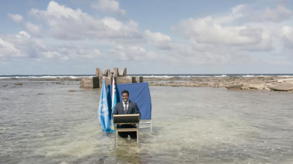 투발루의 문제가 전 세계에 알려진 건 2021년 유엔기후변화협약 당사국총회(COP26)에서다. 당시 회의에선 사이먼 코페 투발루 외무장관이 무릎까지 물이 차오른 곳에서 연설하는 영상이 공개돼 회원국들에 충격을 줬다. 코페 장관은 “우리 영토가 사라질 실질적인 위험에 직면한 만큼 세계 최초의 디지털 국가를 세우는 것을 고려하는 중”이라고 말했다.