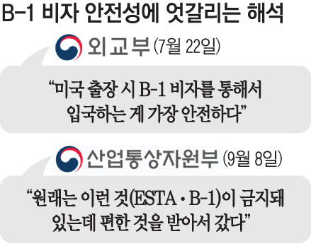 반면 산업통상자원부는 B-1비자가 사실상 불법에 가깝다는 취지의 발언을 내놓으면서 정부 내 엇갈린 메시지가 기업 현장의 혼란을 키우고있다는 비판이 제기된다.