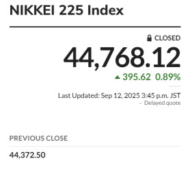 이날 마켓워치에 따르면 일본증시 닛케이225(닛케이)는 전날보다 395.62포인트(0.89%) 오른 4만4768.12엔으로 마감했다. 기술주 중심의 토픽스도 상승 마감했다. 종가는 12.73포인트(0.40%) 오른 3160.49에 폐장했다.