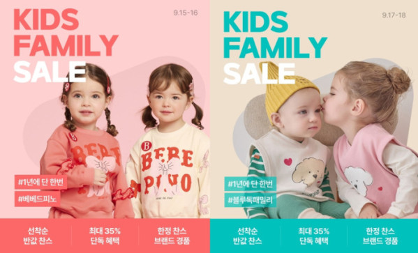 이번 행사에서는 에프엔에프(F&F), 더 캐리(THE KARY), 서양네트웍스, 파스텔세상 등 유명 키즈 브랜드 그룹사가 참여한다. MLB 키즈와 디스커버리 키즈 브랜드를 보유한 에프엔에프는 신상품 최대 35%, 아울렛 제품 최대 39% 할인을 진행한다. 더 캐리는 베베드피노, 아이스비스킷 최대 24% 할인 혜택을 준비했다.