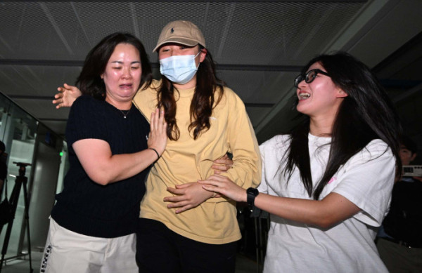 미국 이민당국에 의해 조지아주에 구금됐던 한국인 근로자들이 12일 인천국제공항 제2여객터미널을 통해 귀국한 뒤 주차장에서 가족과 만나고 있다.